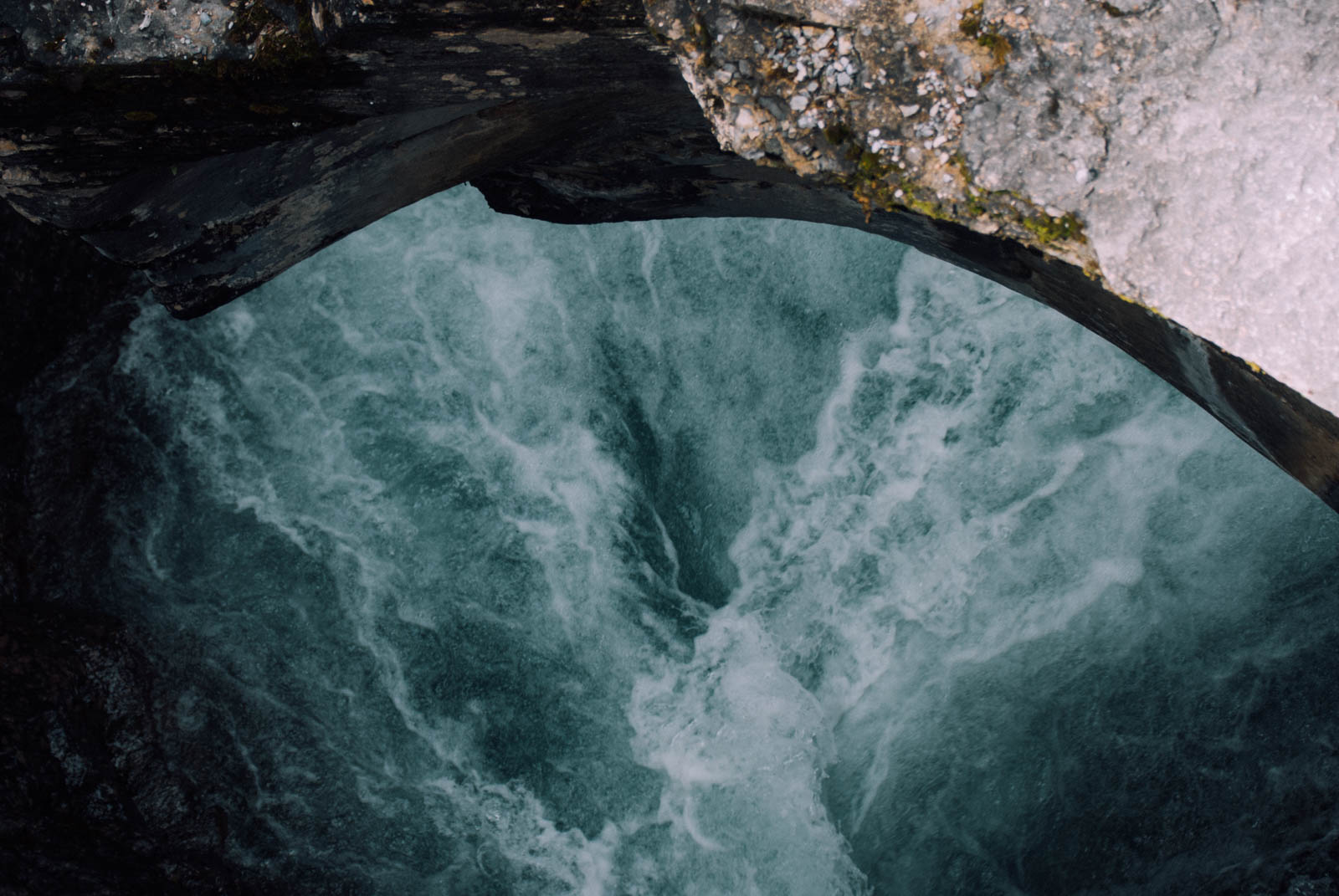Nous sommes restés un petit moment au canyon Mistaya pour quelques photos périlleuses, puis sur le conseil fourbe d'un panneau nous sommes 3 à avoir marché vers un belvédère qui n'arrivait jamais (et au vu des inscriptions sur les panneaux intermédiaires, nous n'étions pas les seuls à avoir été dupés par l'absence d'indication de distance). Nous avons rebroussé chemin au bout d'un quart d'heure histoire de retrouver les autres qui devaient se demander où on était.