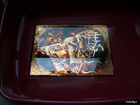 En tout cas la plaque rend très bien à ce stade là, en négatif brun sur cuivre. Et l'illustration colle bien à la Fête de la Musique non ? Je me suis inspirée d'une robe de Métamorphose pour cette illust'. De comment elle se créait.