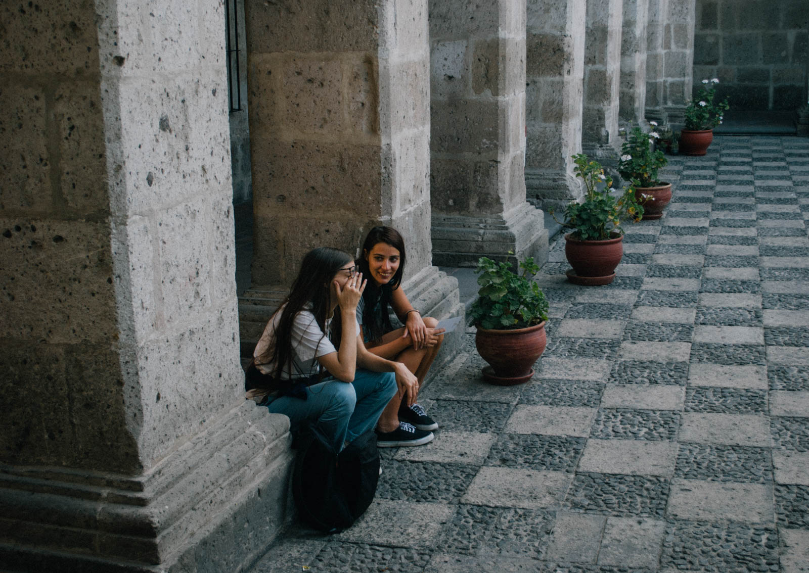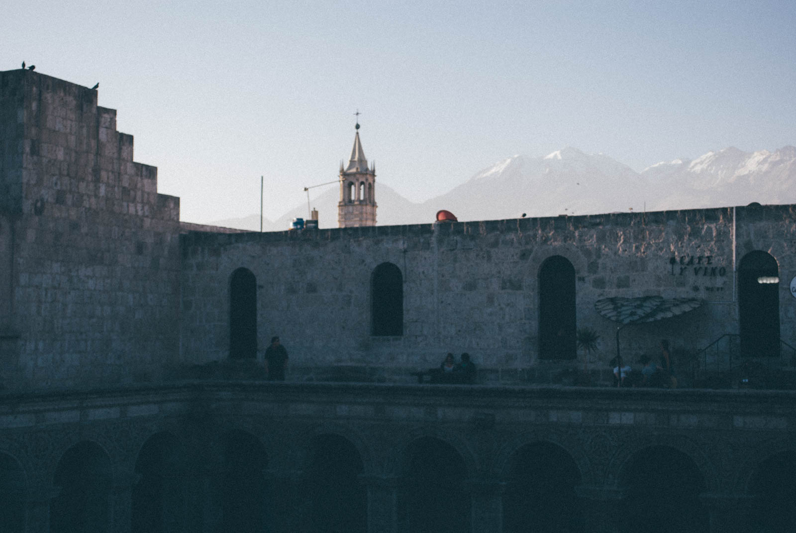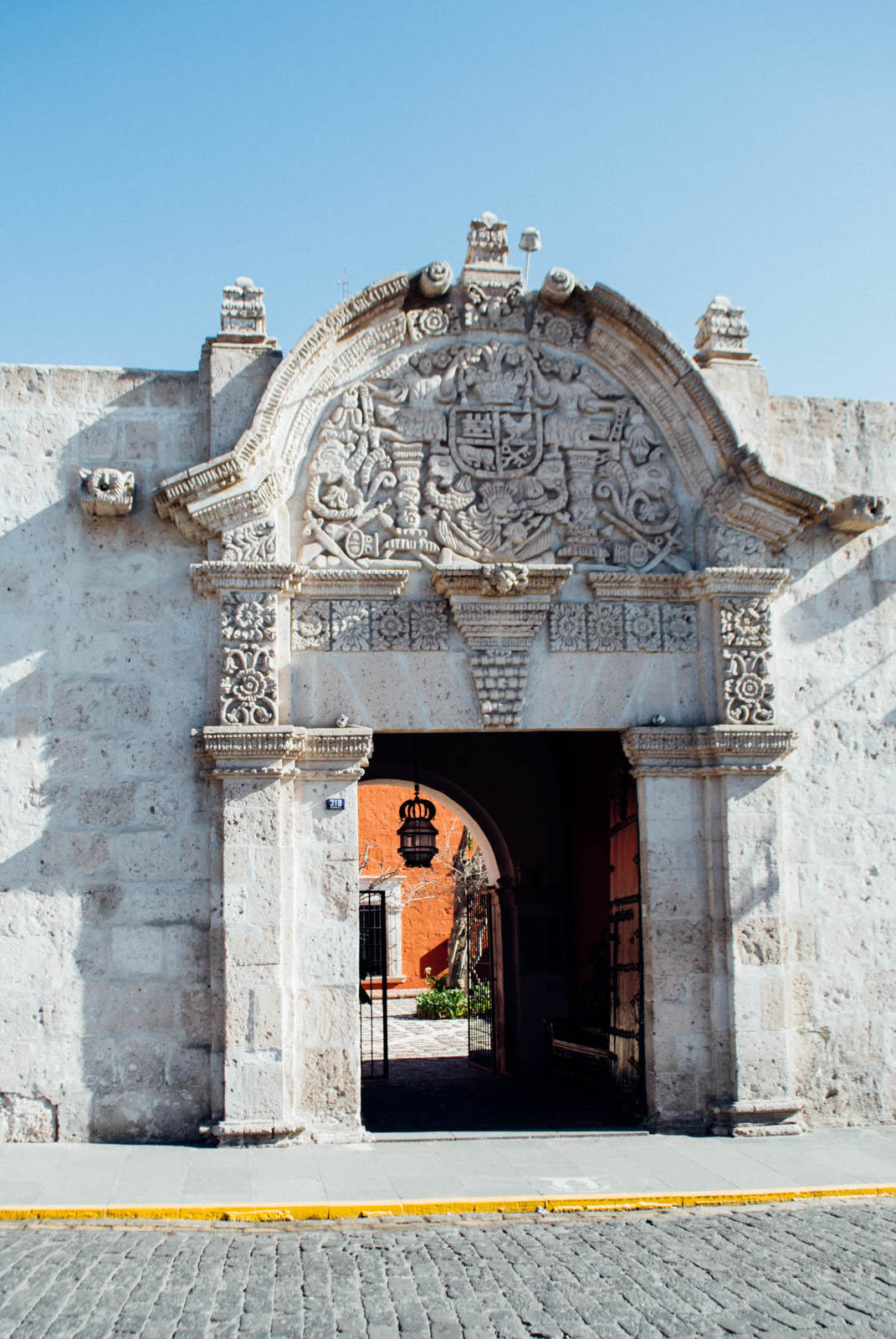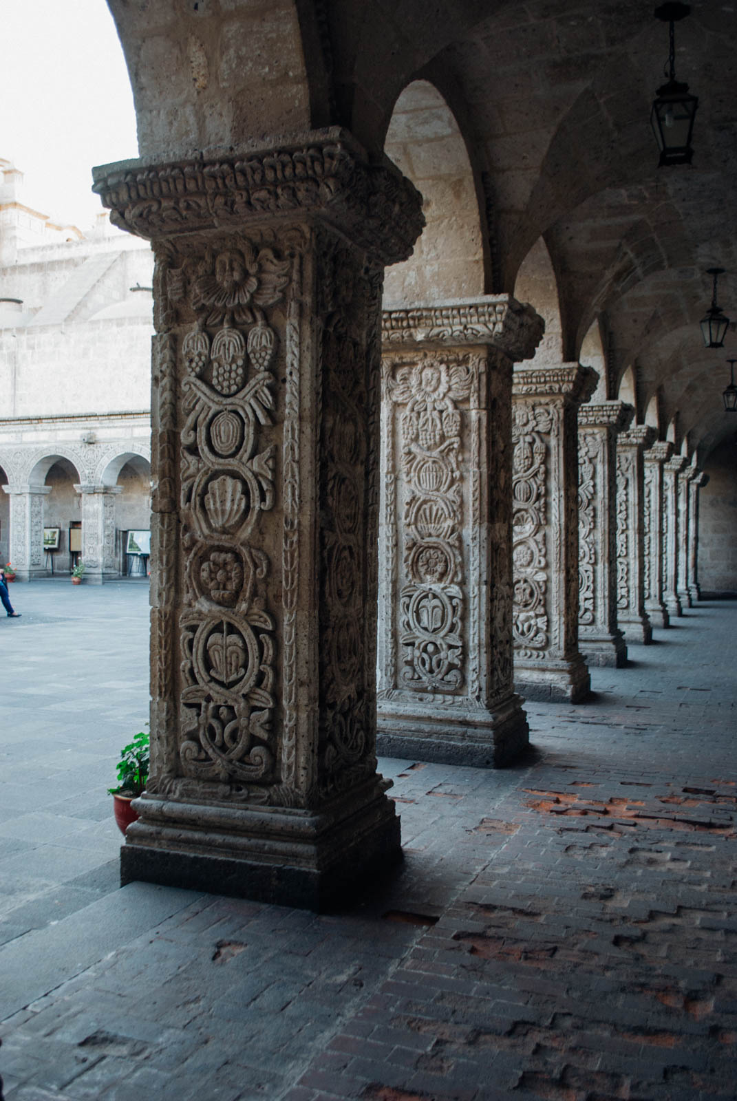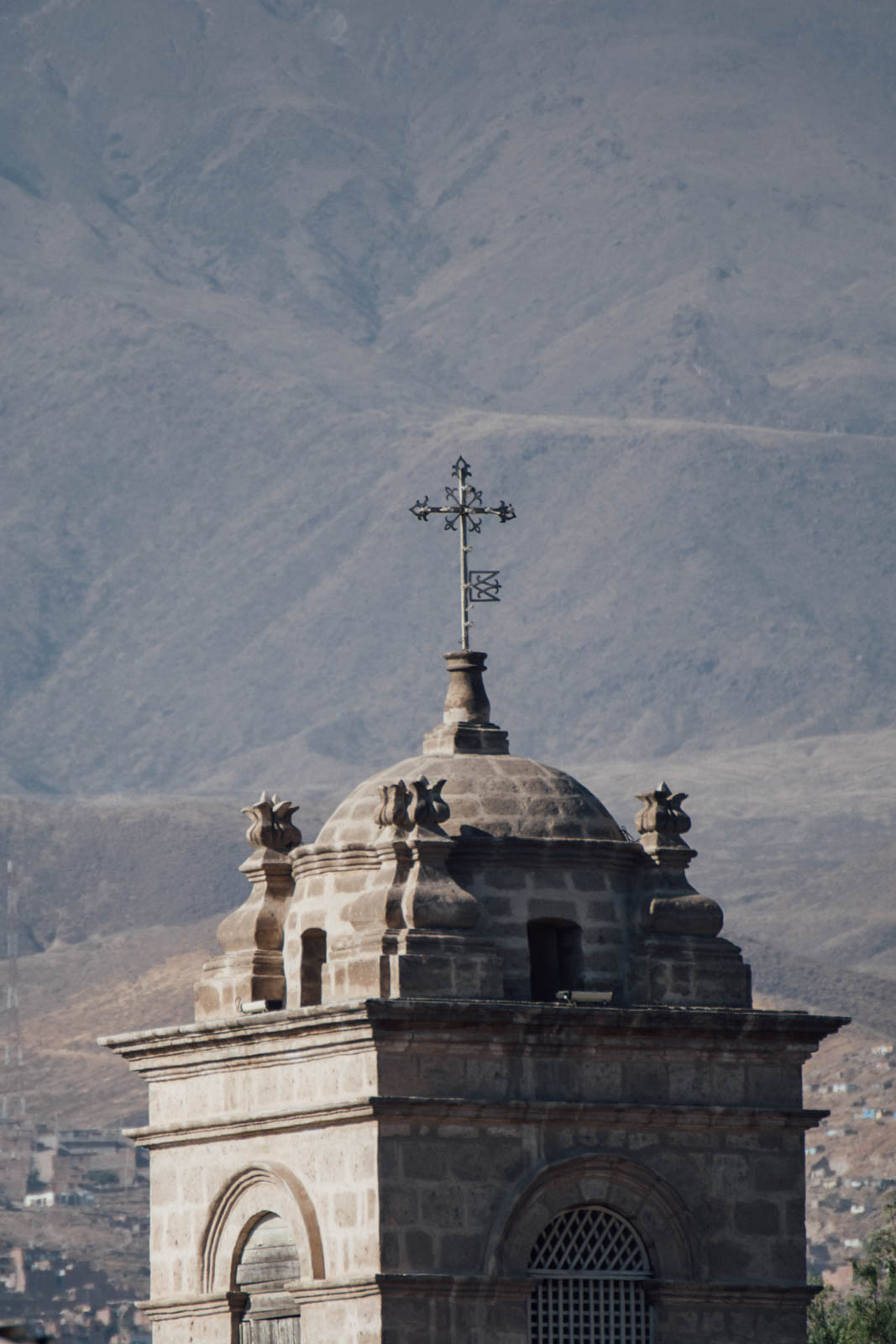 Sur les conseils de ma tante, nous avons boudé Lima qui semble-t'il vaut peu la peine en hiver, et avons pris le second de nos 5 avions (sic) pour filer directement à Arequipa, comme je l'ai statué dans le poste précédent. Cependant l'immense monastère de Santa Catalina étant considéré comme une ville dans la ville, l'heure est venue de vous faire découvrir la Arequipa laïque… oui bon, il n'y a aucune différence. Malheureusement, je n'ai pris aucune photo des restaurants ou de notre hôtel qui ont pourtant amplement contribué au charme de cette étape. Je n'en ai d'ailleurs pas plus de la population — notez que la majorité des habitants de cette ville sont des voitures. Je me suis empressée de tester la spécialité de la ville dès le premier jour, l'excellente chupe de camarones (soupe d'écrevisses). L'autre spécialité étant bien sûr, le service effroyablement lent (mais ça c'est propre au pays entier). Quant à l'hôtel, son saint patron n'était autre que le petit reporter belge dont je parlais dans le précédent billet, et bien qu'excentré, il était suffisament bien aménagé, calme, avec de l'eau chaude, pour nous induire en erreur sur la qualité des hôtels à venir (sauf sur la fraîcheur des nuits).