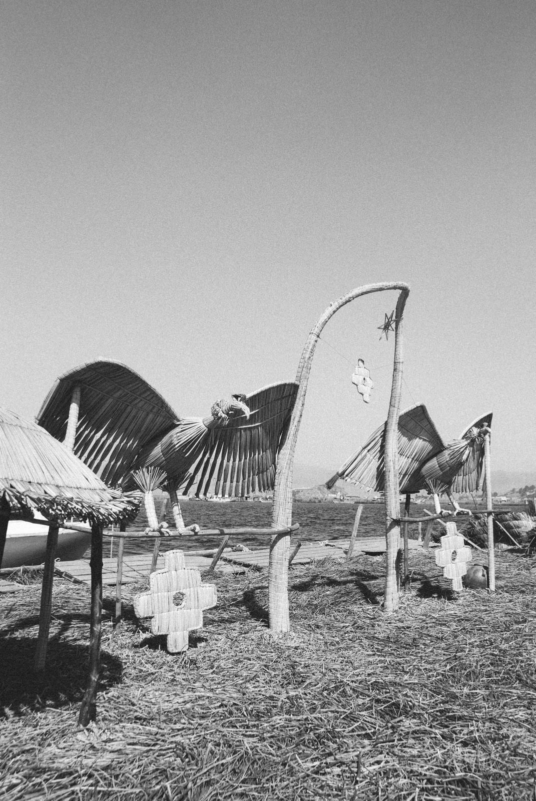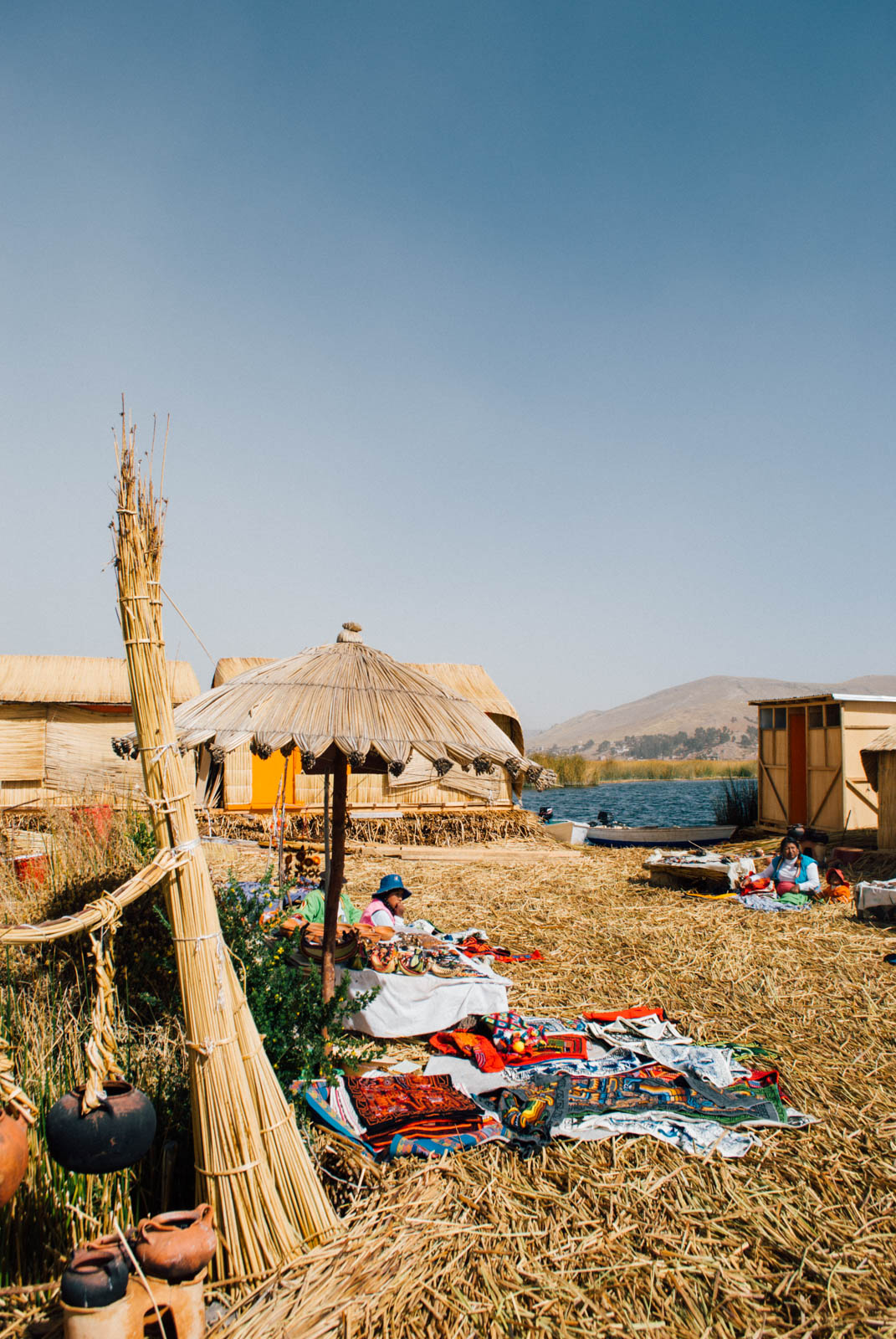 Pour le lendemain j'avais prévu une excursion de 2 jours sur le Titicaca[1] via une agence, une première je pense pour notre famille habituée à essayer de tout faire par nos propres moyens. J'avais en outre choisi la formule un peu plus chère mais plus équitable de l'agence All Ways qui devait nous faire nous immerger encore davantage dans la culture andine, bonjour l'ambiance quand une famille d'introvertis débarque chez l'habitant et est censée partager ses taches quotidiennes. Heureusement pour nous le résultat final a été plus touristique que prévu, ce qui m'a sauvée car je n'assûme jamais ces choix fantaisistes dont je me fends parfois et qui sont basés sur des critères de sociabilité que je ne remplis juste pas du tout. De fait la première étape après une heure de bateau sur les mythiques îles flottantes Uros avait de légers airs de traquenard car on attendait clairement de nous que nous dépensions nos PO[2], ce qui tombait mal car nous n'en avions absolument pas, seulement des grosses coupures. Reste que ces îles m'avaient quand même fait rêver bien des années depuis que j'avais vu un reportage sur Arte dans ma jeunesse et cela valait clairement le coup d'œil (plus que l'artisanat hit-or-miss, ça c'est sûr, même si je serais bien repartie avec un bateau miniature). Je vous laisse juger plutôt :