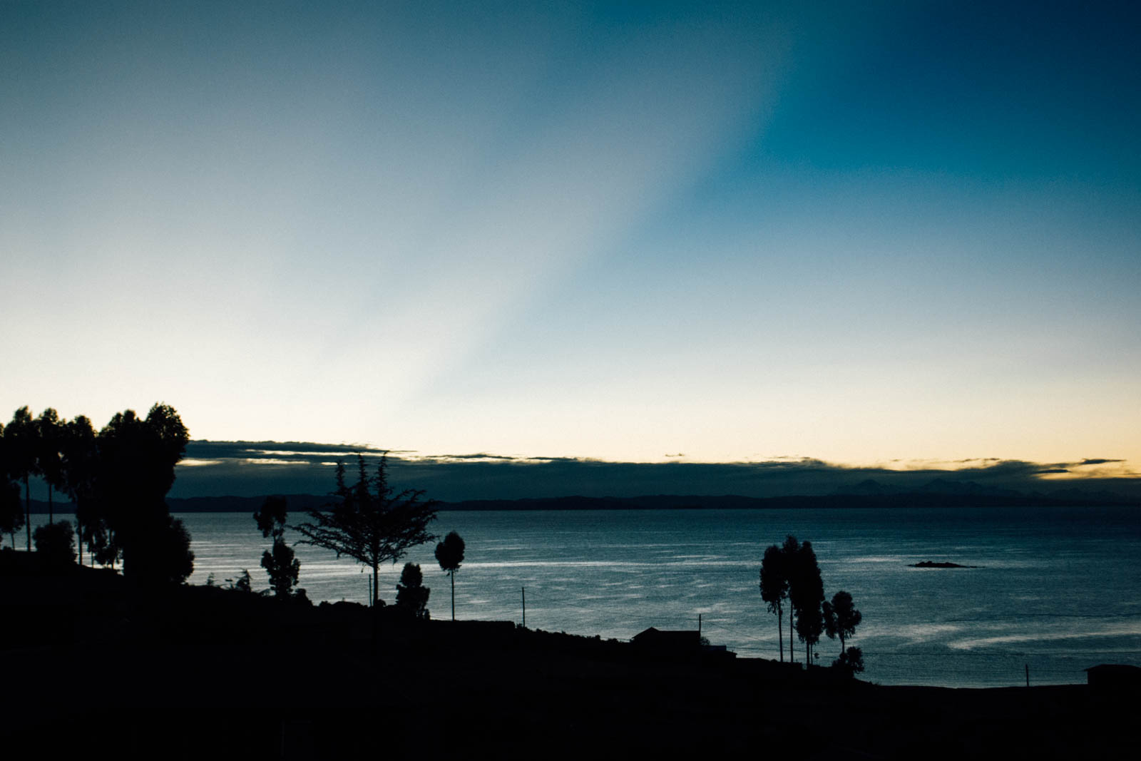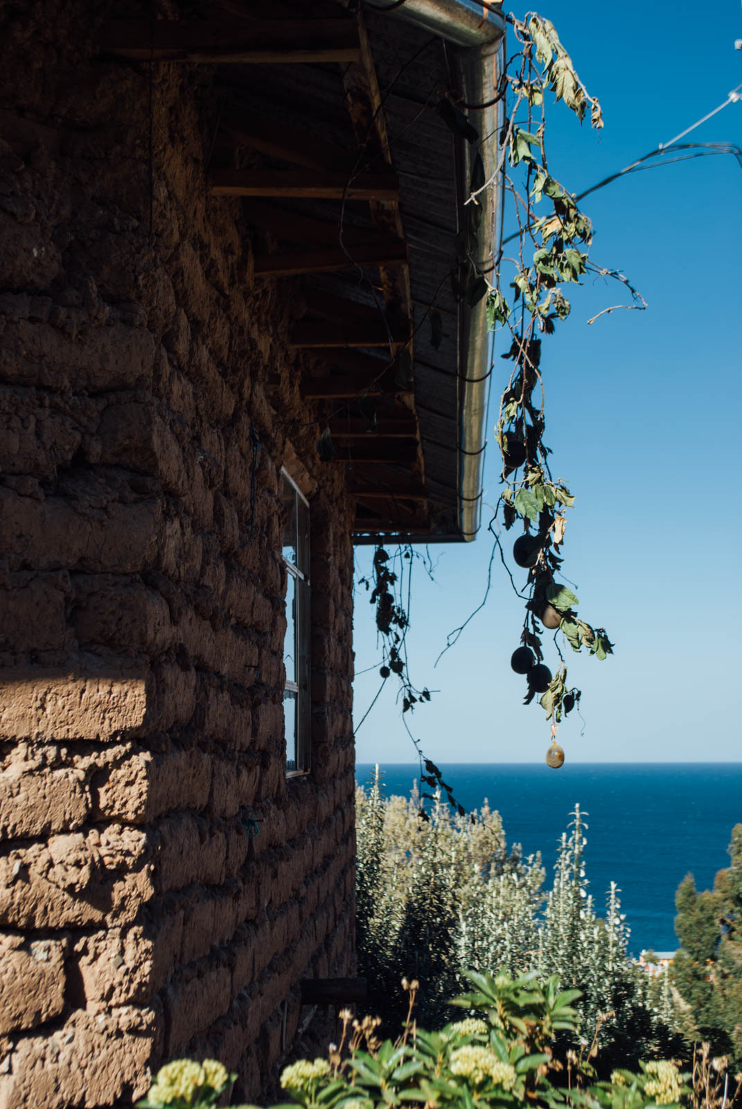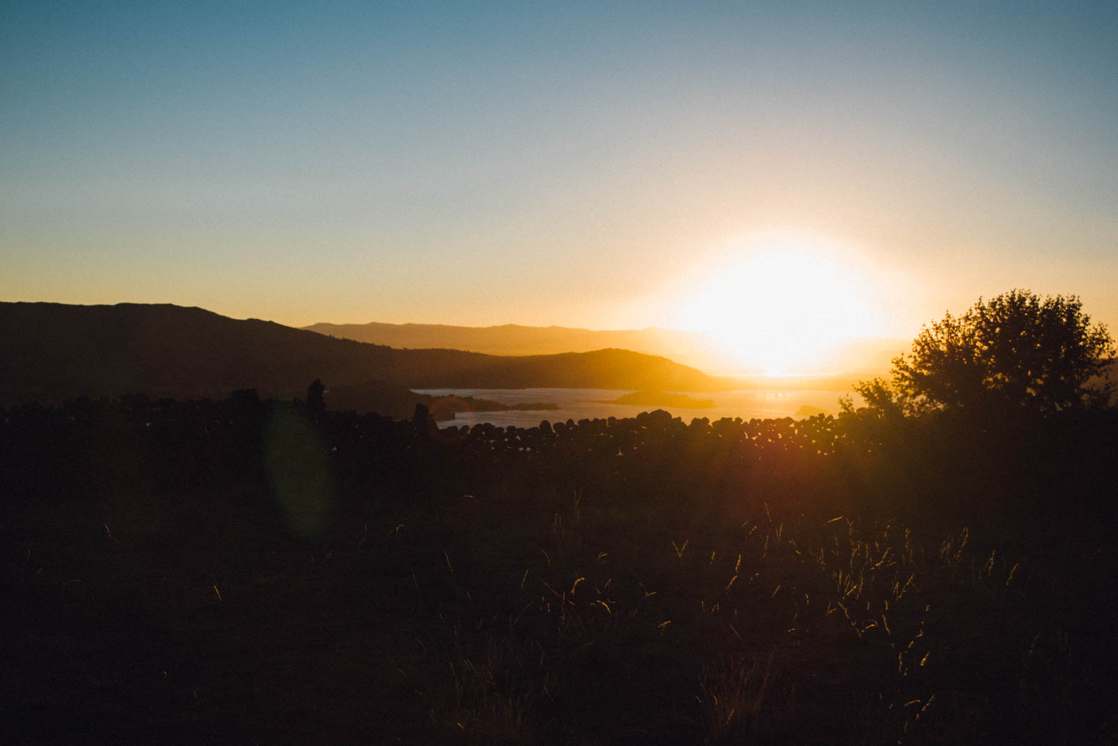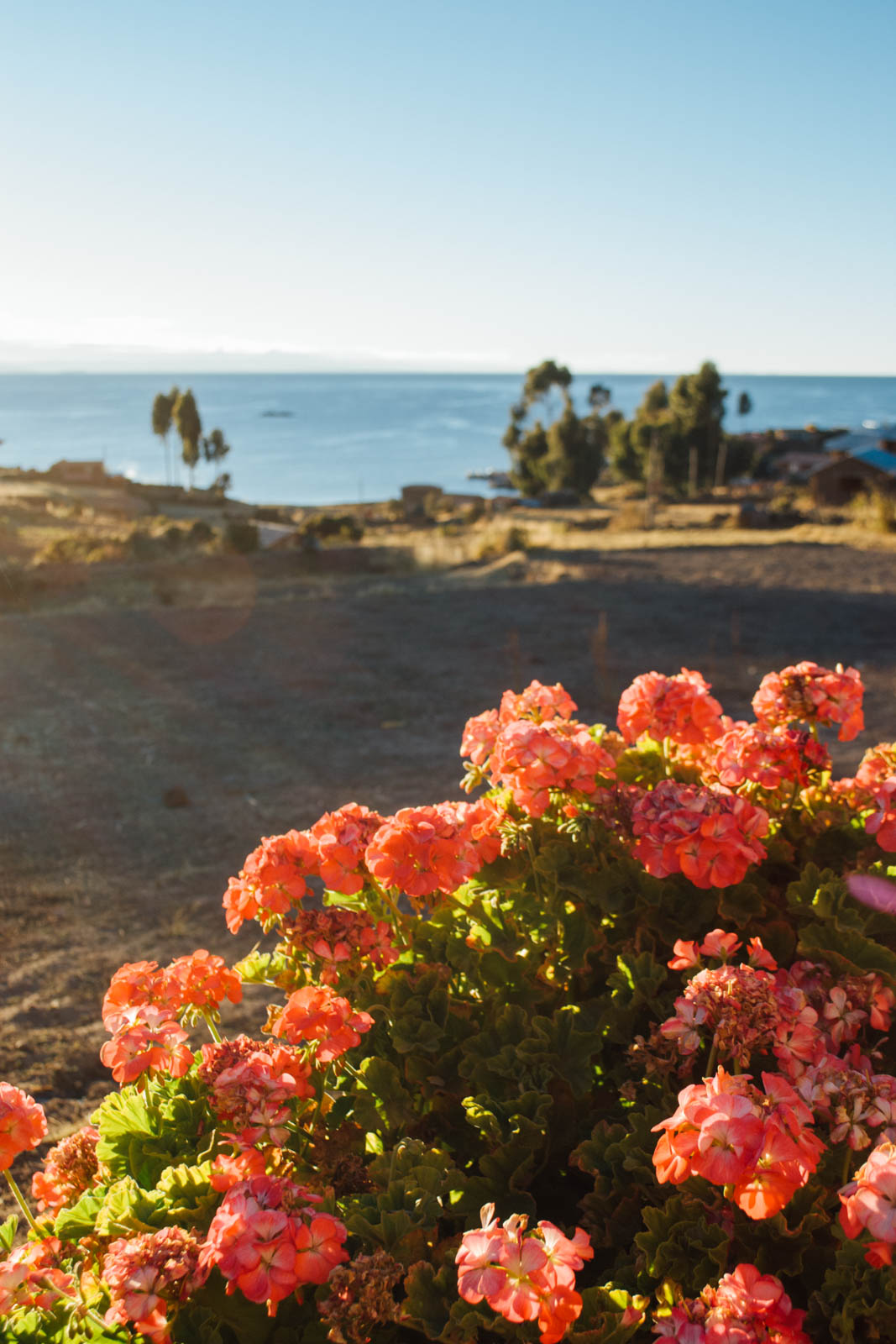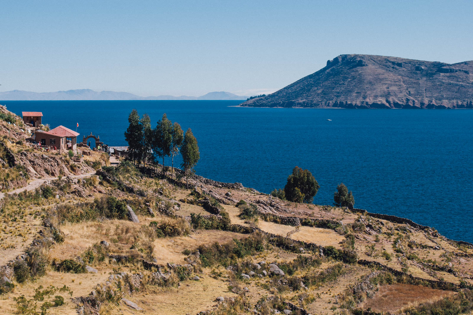 Peu après notre (très bon) guide nous a fait monter en haut du village et nous a parlé un peu des coutumes locales. Il nous a déballé quelques produits cultivés sur l'île, des pommes de terre, de l'oca du Pérou, de la quinoa etc. Puis il a convié ceux que ça intéressait à une partie de foot avec quelques enfants du village. Et après que tout ce monde ait donné jusqu'à son dernier souffle dans cette activité… il les a fait monter jusqu'aux plus hautes parties de l'île battues par un vent de tous les diables, afin d'admirer le coucher du soleil depuis un des deux temples en ruines présents, celui du Pachatata et celui du Pachamama — ce dernier étant moins venteux il fut l'heureux élu.