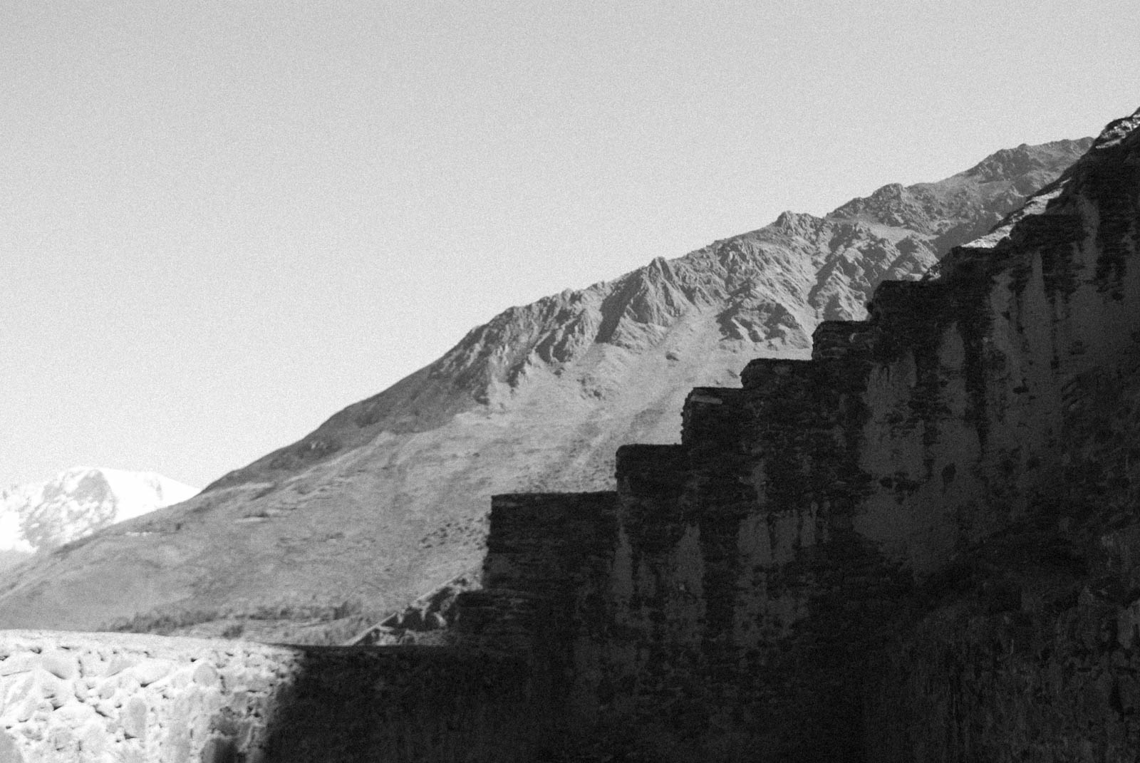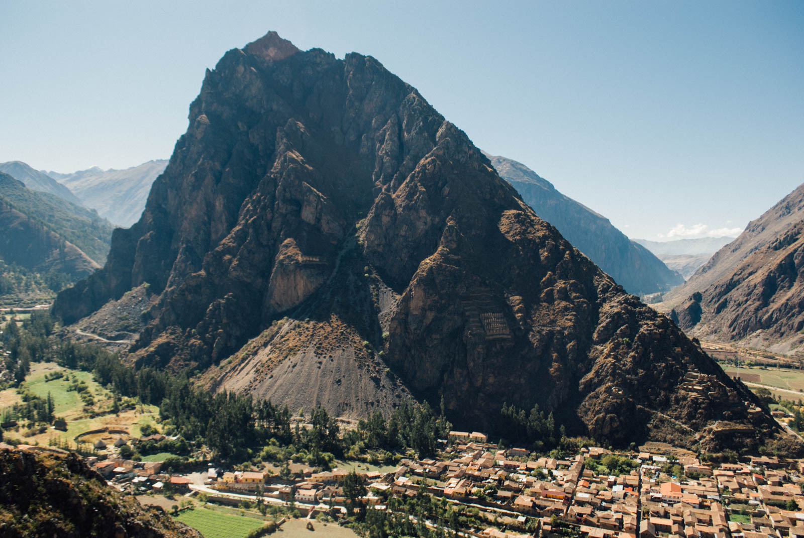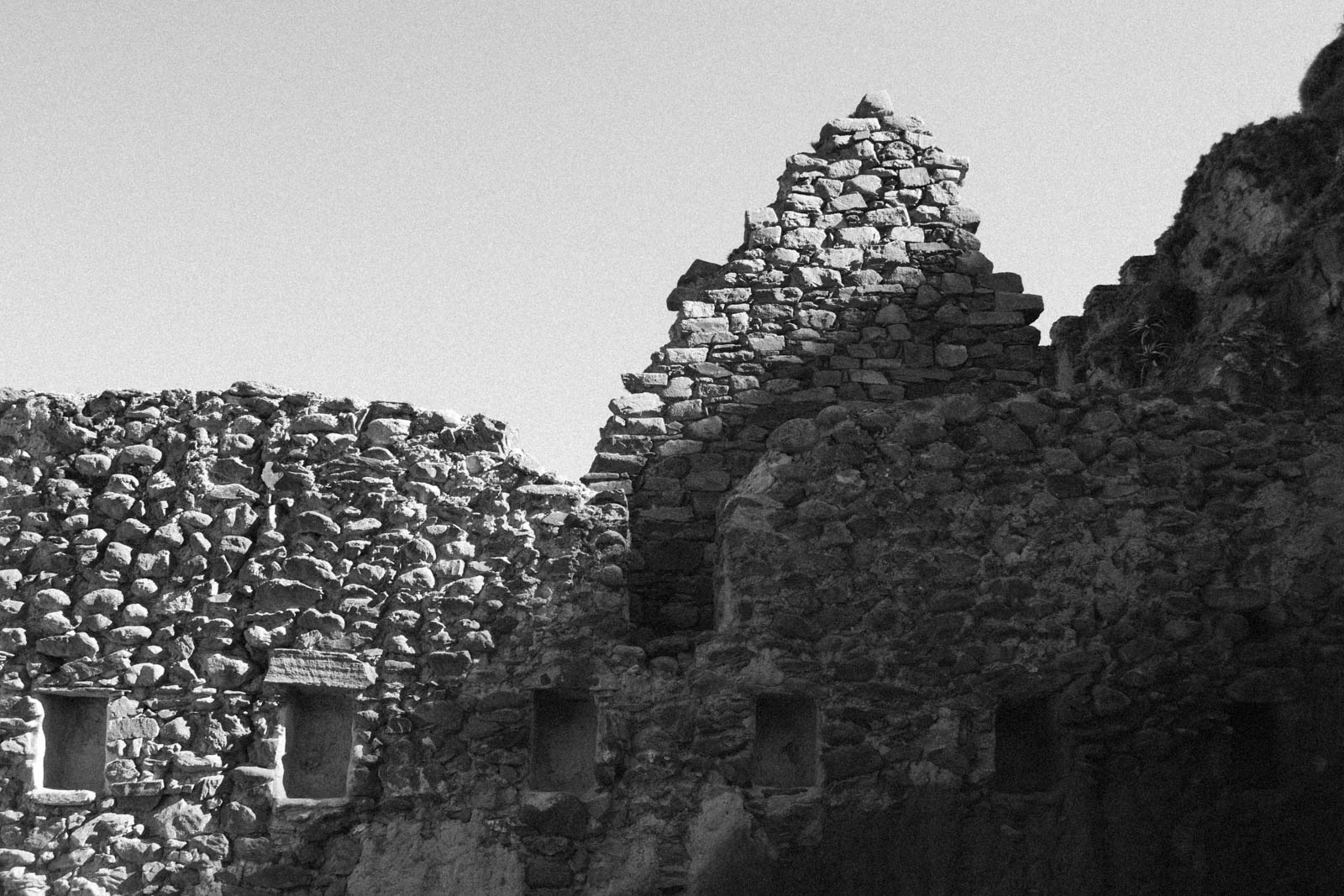 En haut des ruines un petit chemin continuait dans la montagne, nous en avons emprunté une partie sans trop savoir où cela menait ou s'il agissait d'une boucle qui nous aurait redescendu à un autre endroit du site archéologique. Dans tous les cas cela nous a valu une superbe vue d'ensemble sur la montagne. Nous en avons également profité pour observer au téléobjectif la fête au village.