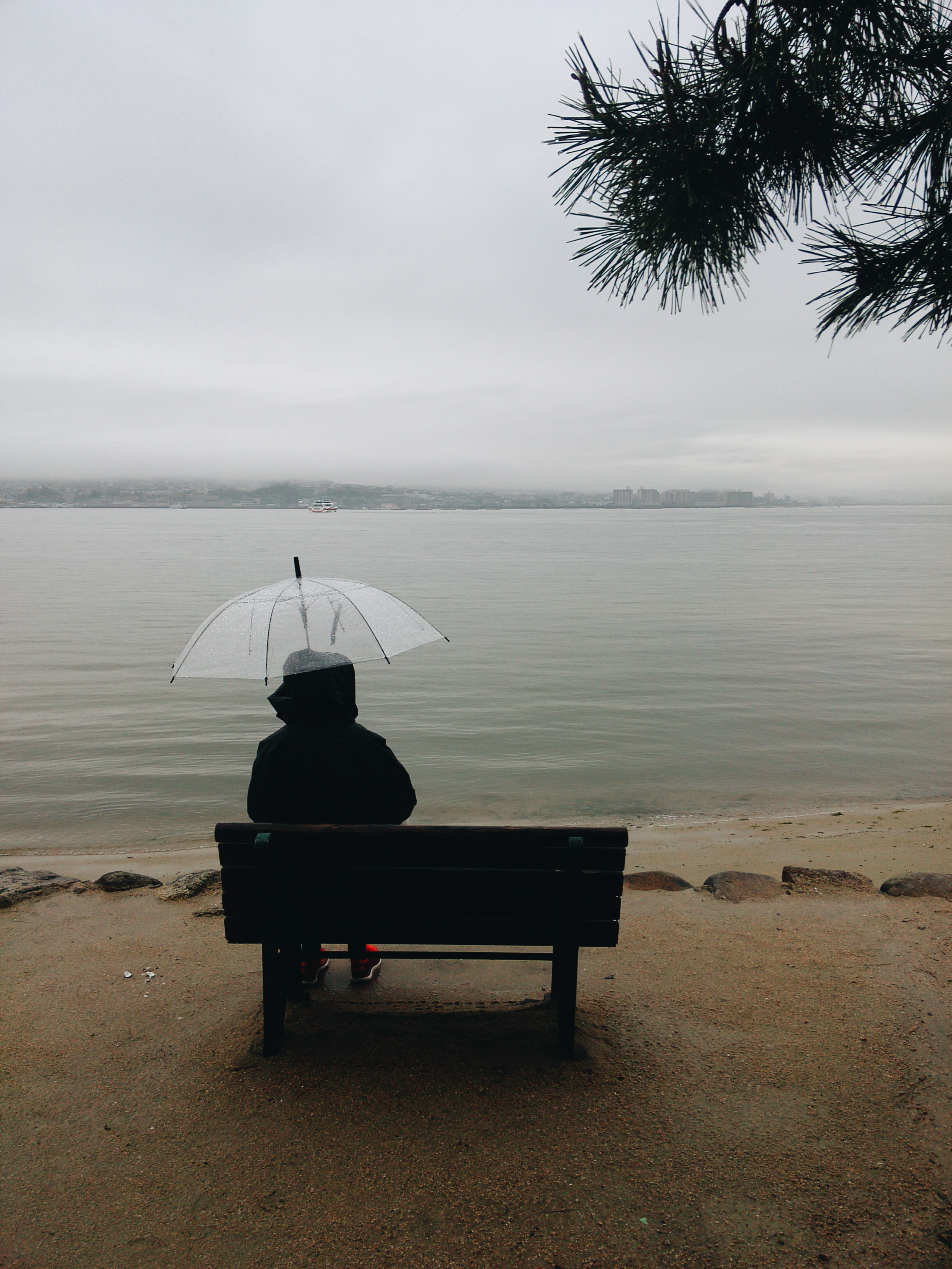 Miyajima était bien pluvieuse, mais l’image sous la brume est très belle, malgré l’appareil dont elle provient (du coup j’imagine que le paysage dont elle est tirée est encore plus mystérieux que celui que je vois ici).