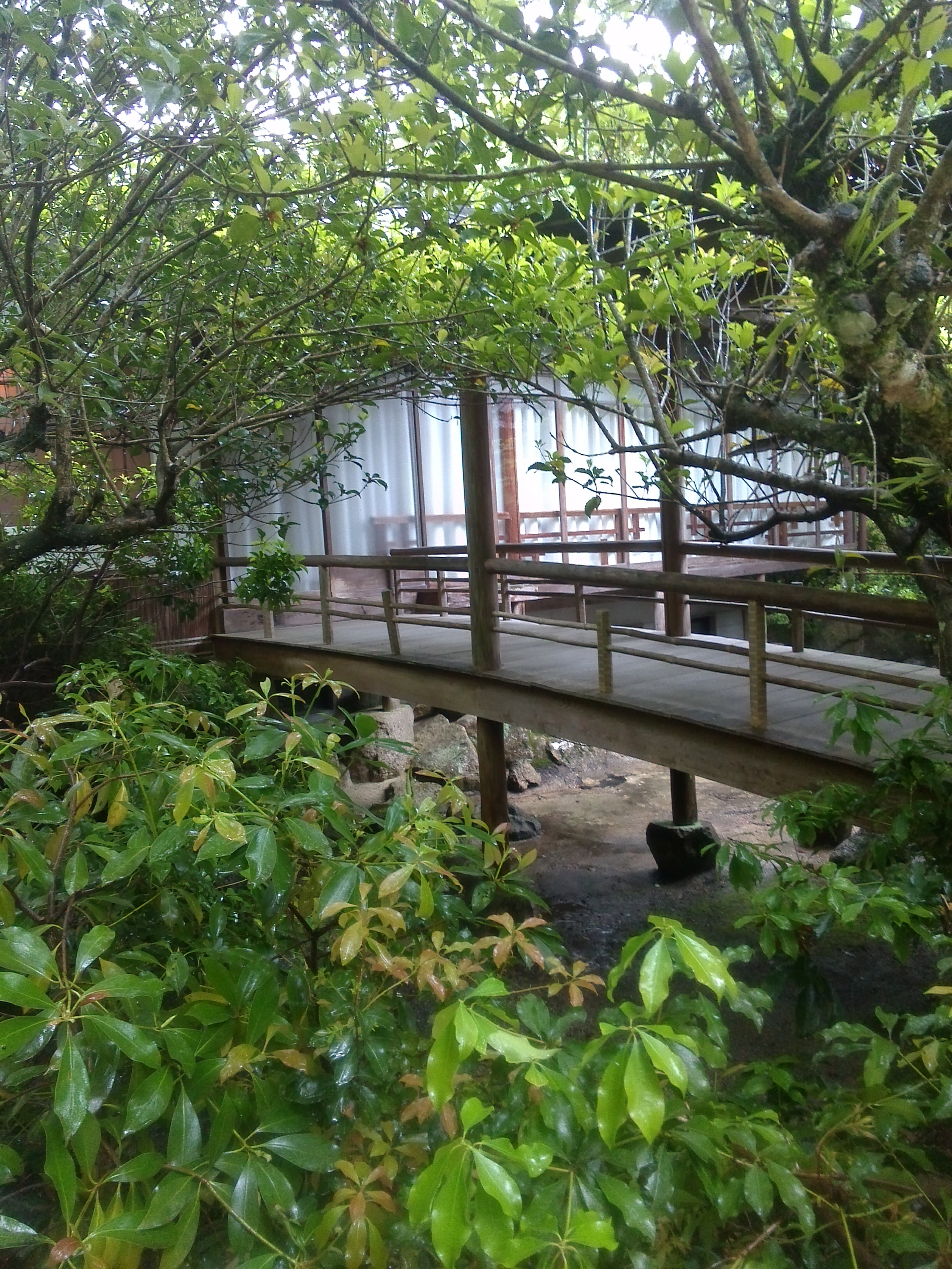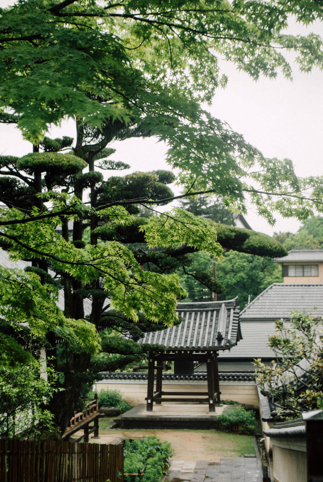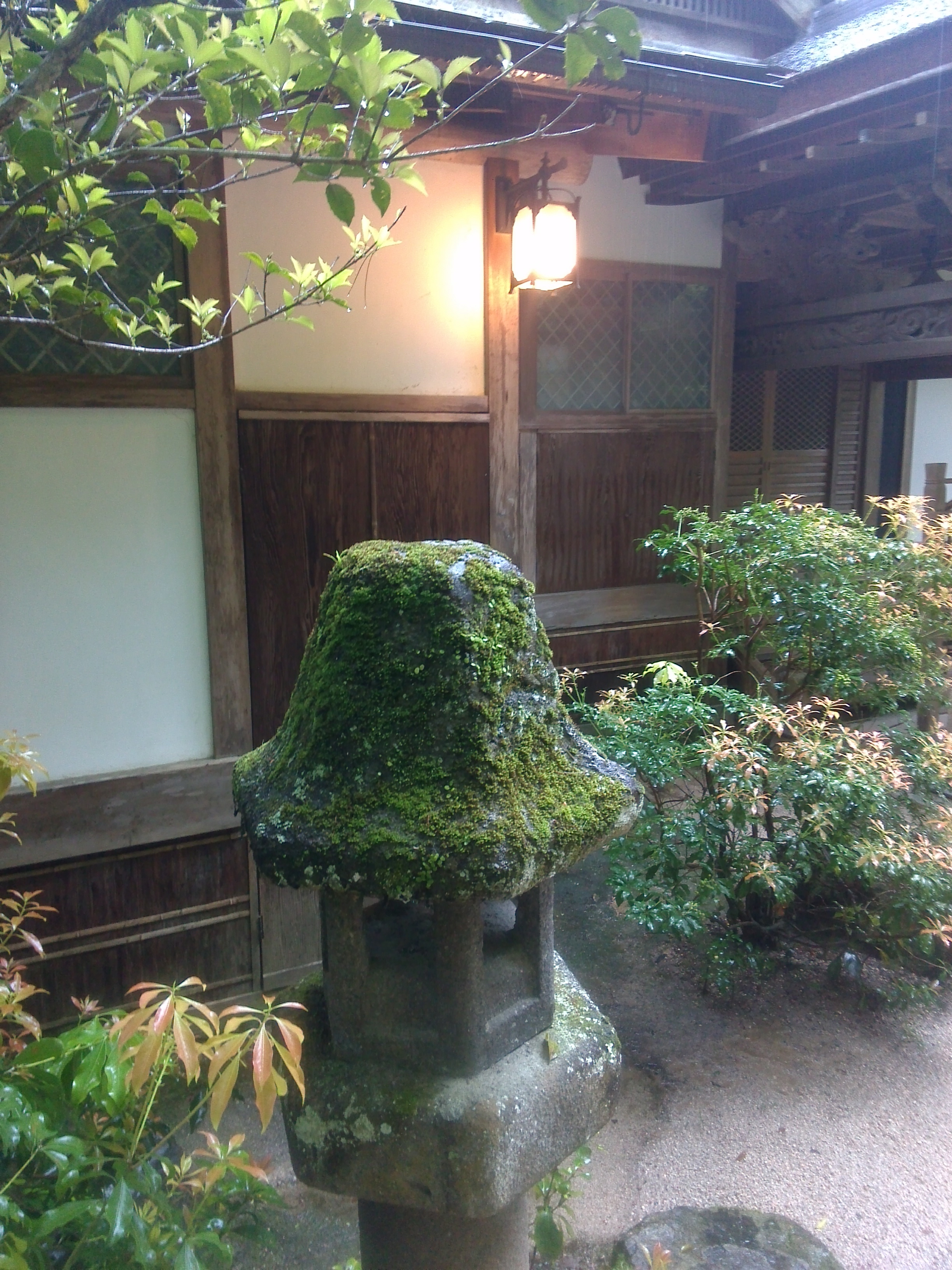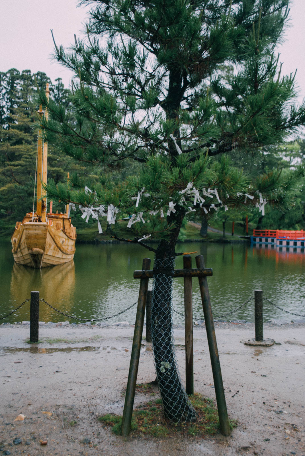 Deux étapes déjà parcourues en d'autres temps, mais qui restaient à découvrir pour d'autres. Kyoto nous promettant déjà quelques mondanités assez spécifiques question emploi du temps, il nous fallut donc enchaîner ces deux expéditions les 9 et 10 mai, tous deux jours de pluie du reste. Ma mémoire ne valant pas celle d'une geisha j'étais convaincue que ces deux points de chute étaient tous deux proches de Kyoto, occultant donc les 3h de trajet pour se rendre à Miyajima… Nara, en revanche, n'était pas bien difficile à atteindre en shinkansen, encore que le temple par lequel nous avions choisi de commencer nous sembla ne jamais se rapprocher. La pluie, le vent, et les daims lenahoschekivores eurent raison de notre patience et nous poussèrent vers une petite maison de thé sans le moindre regret, car même sans une divinité à nos côtés siroter un bol de matcha recèle également de trésors de spiritualité, l'ambiance étant toujours parfaite, travaillée sans en avoir l'air (cette pluie qui goutte sur les rochers dans la cour…!)