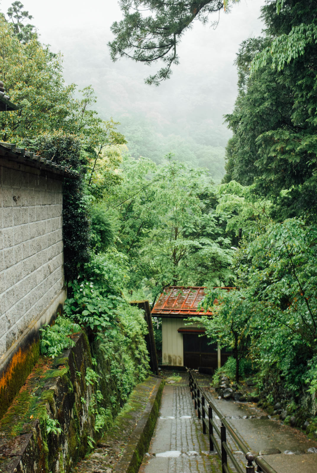 The next day, we woke up very early in the hope of being as alone as could be in the public baths, and lo and behold, we succeeded! One of the baths was enclosed in the building, but another one had a nice view on the outside, so we picked it and enjoyed the contrast with fresh and rainy weather, and the view on the river below.