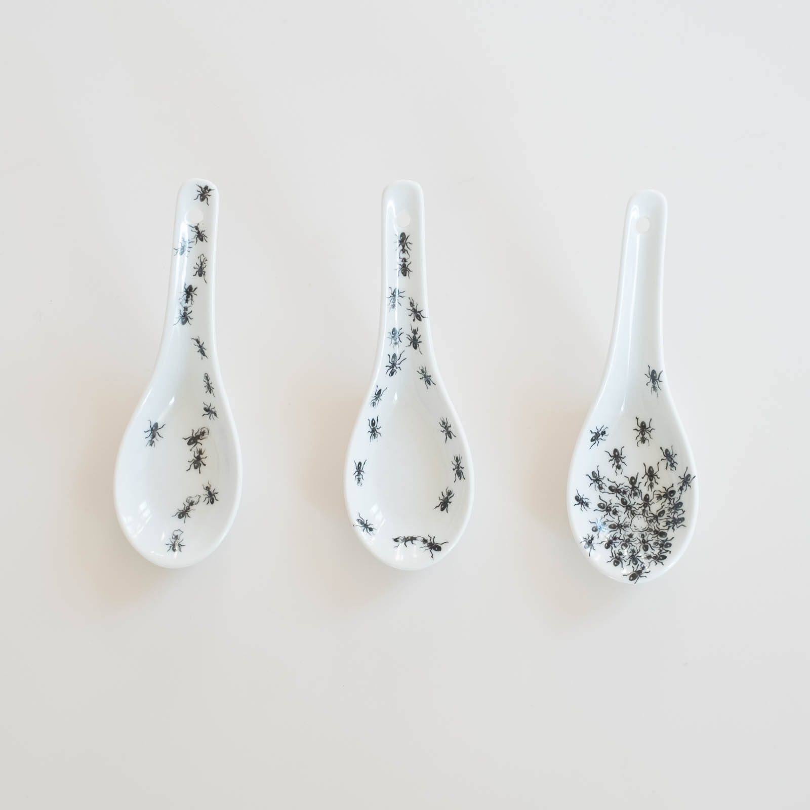 En revanche, quelques pièces beaucoup moins recherchées et surtout pas chères du tout inspirées par mon Herbier en Balade[2] peuvent déjà être magasinées dès à présent : j'en avais cinq lorsque nous avons lancé la boutique, deux sont déjà parties (mirce mi !) mais deux autres les ont depuis remplacé, photographiées juste avant de rentrer à Aix (depuis le début de l'année, j'ai fait pas moins de trois séjours longs à Valence[3] pour travailler et cuire mes propres pièces). Et si vous avez lu ce billet jusque là, vous méritez bien quelques encouragements, donc voici un petit timelapse de ma cuillère « Colloque » (dédiée aux donneurs de leçons de vie / prosélytes).
