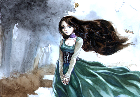 Pour le line, je suis bluffée @@". Deja que j'adore l'aquarelle a la base mais les plis les reflets et puis le fond (je suis fane du fond, suggeré mais vachement bien foutu), j'ai honte de ma version maintenant XD.