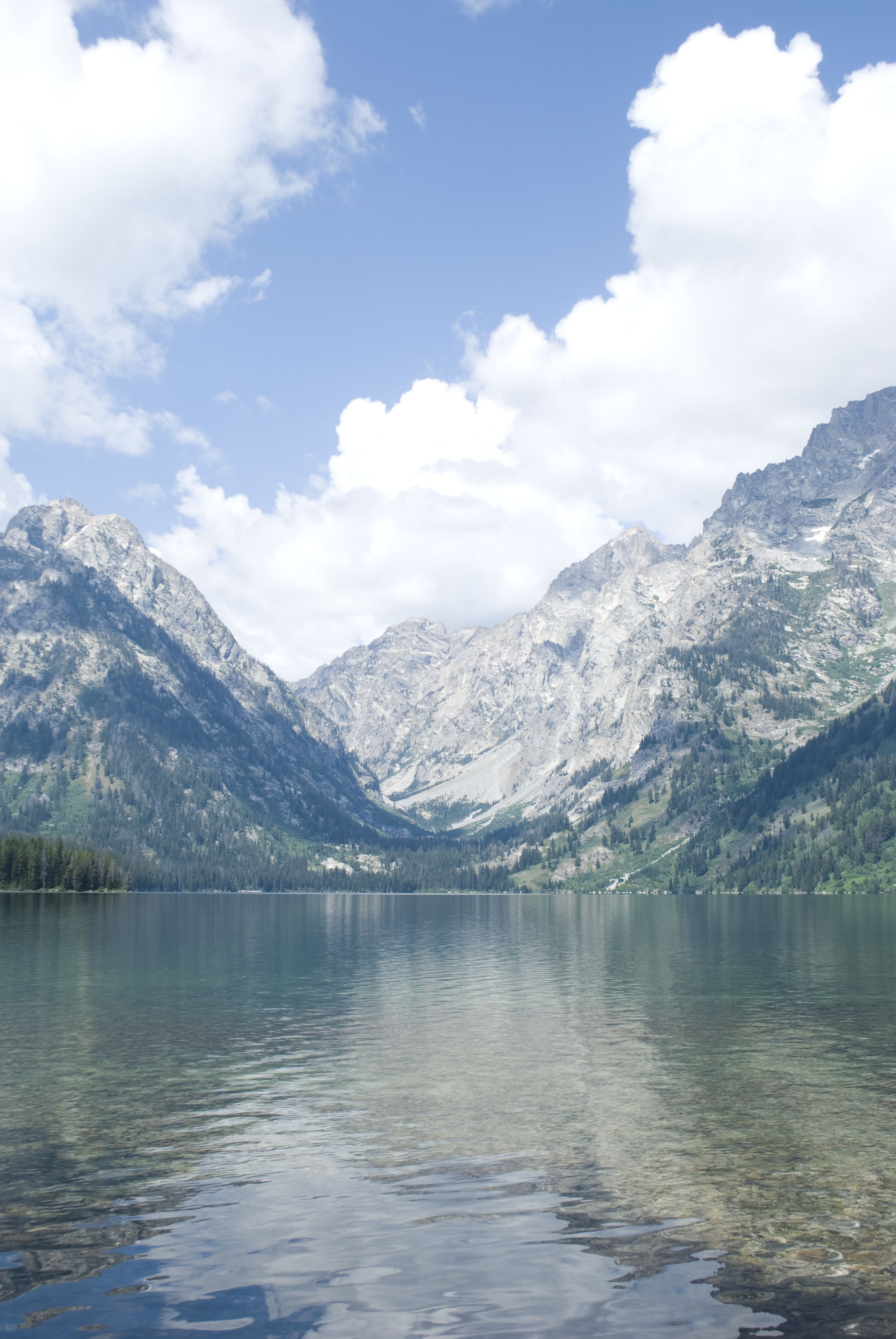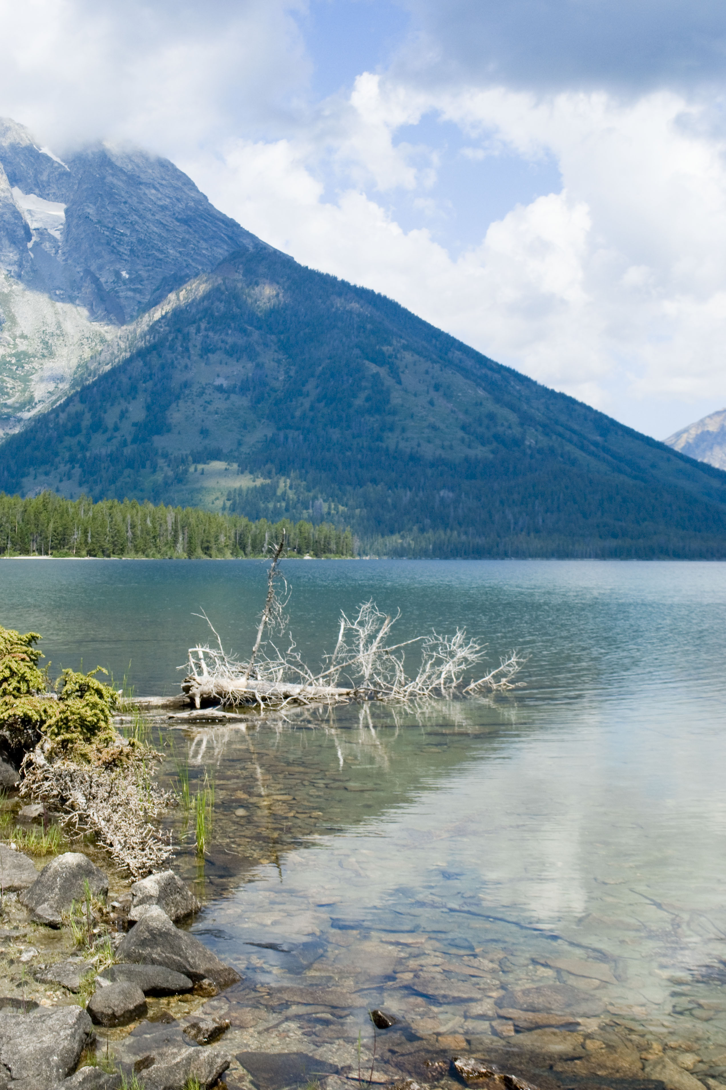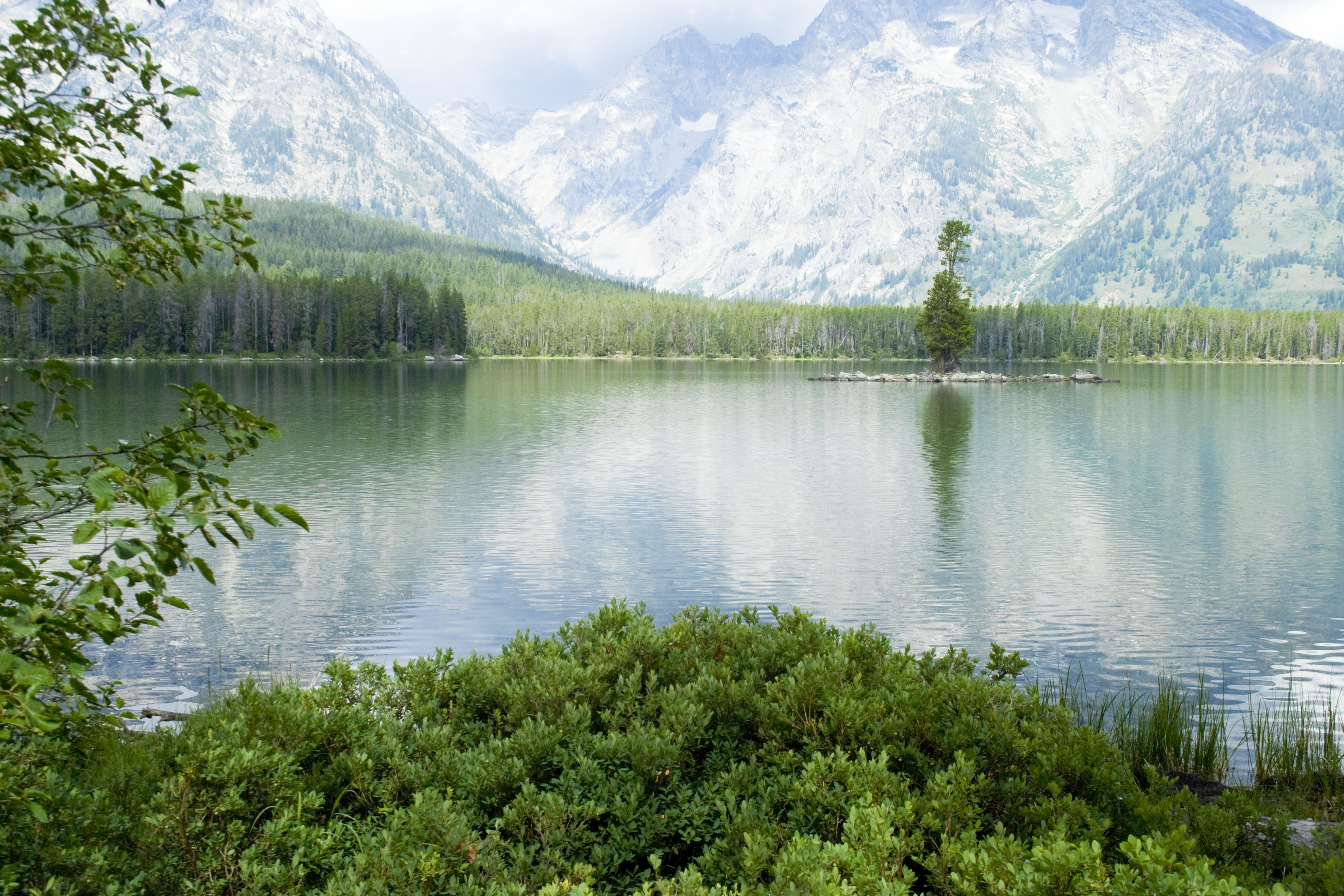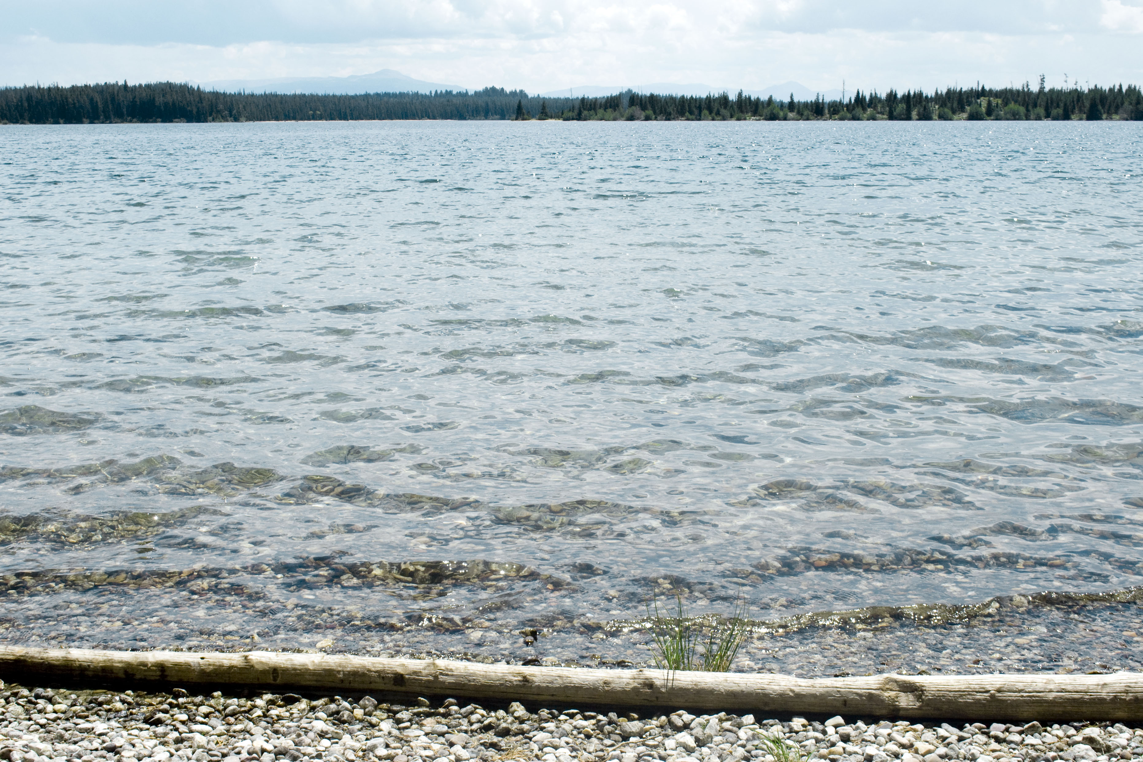 Vous savez comment outrer le personnel d'un parc ? Vous allez à l'accueil et vous leur demandez s'il est souvent comme ça, le temps. Fort heureusement : non. Un peu capricieux, changeant même, mais pas mal de bleu. Nos velléités outrancières n'étant pas en reste, nous avons décidé de mettre tout de même à profit le grand soleil du lendemain en revenant dans le parc de Grand Teton traversé l'avant-veille. Au passage qu'est-ce que c'est agréable, d'être tranquille tout au bout d'un lac.