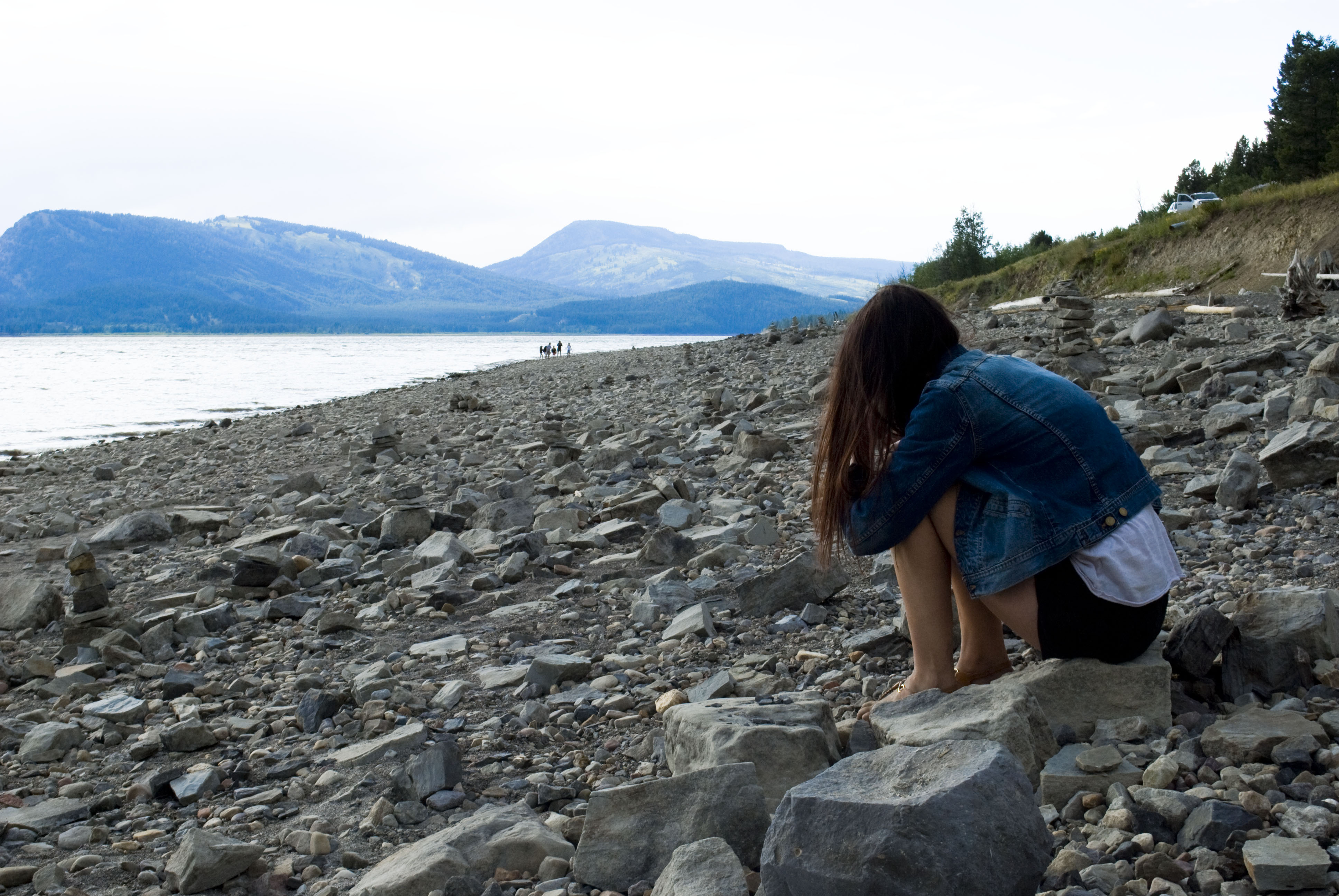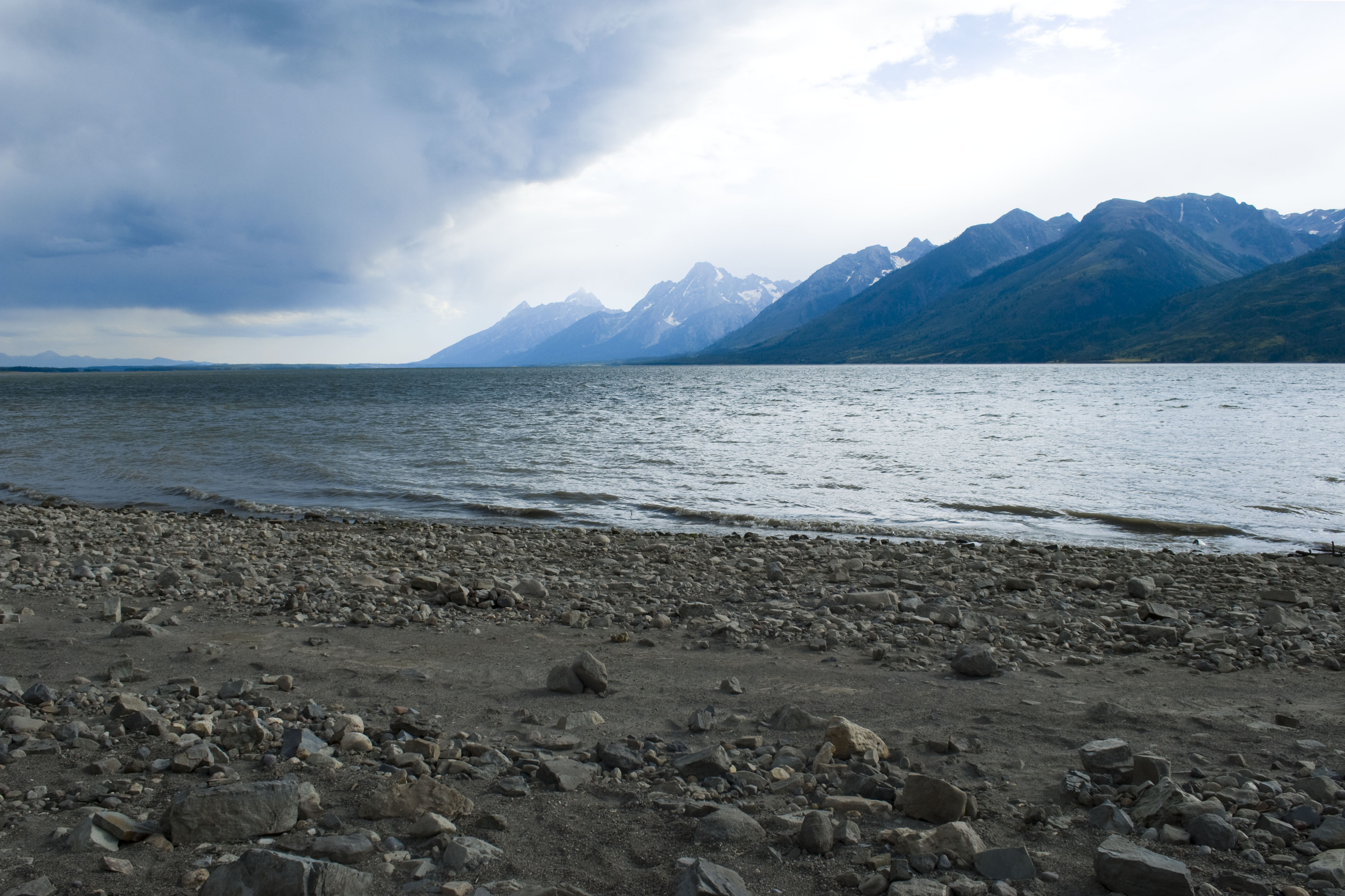 Want to know what outré manners to have with a park's staff? Go to the reception and ask if the weather is always like this. Fortunately: no. A bit unpredictable, changing; lots of blue. And because we're so ill-behaved we though we could use a little sunbathing the next day in Grand Teton, the other park we crossed upon arriving. Such a pleasant experience, provided the place is as lone as you would expect from the far end of a lake shore - hopefully it was.